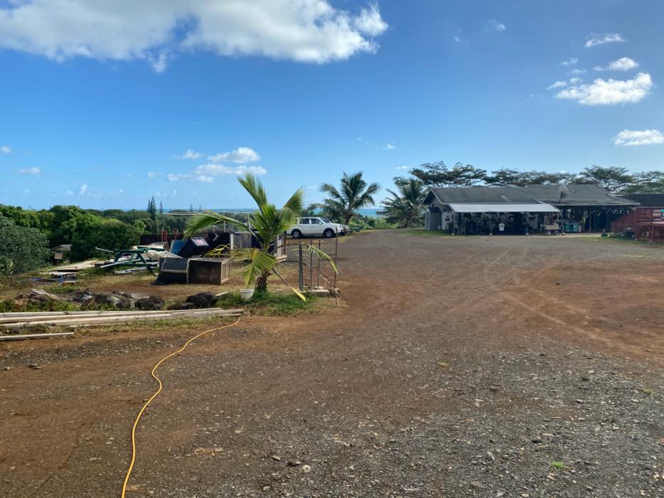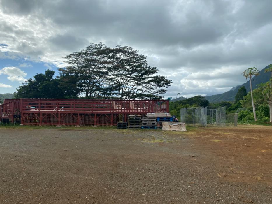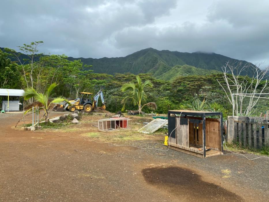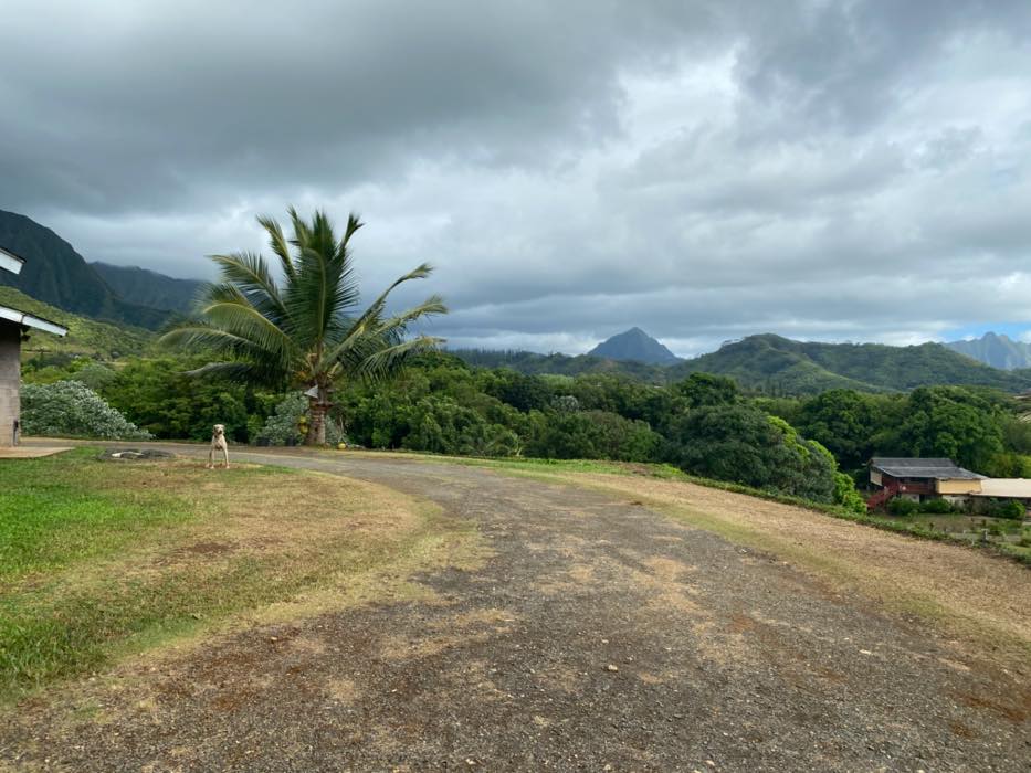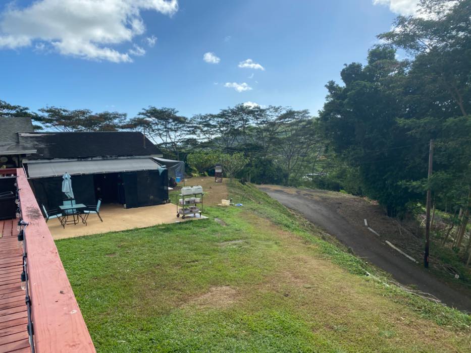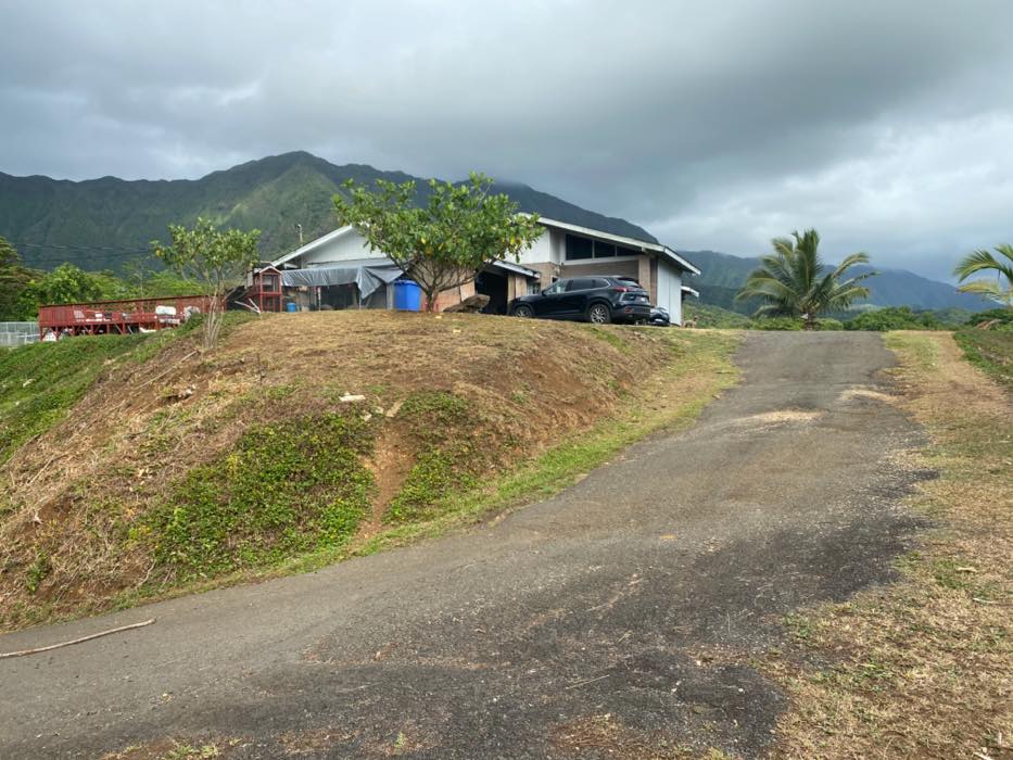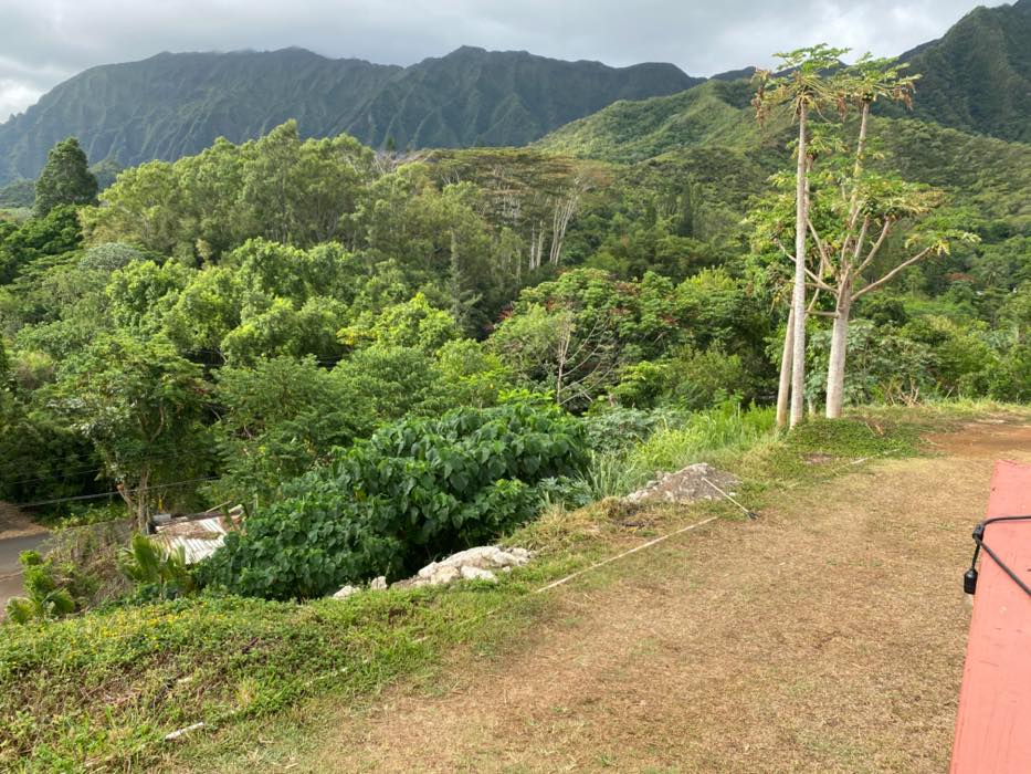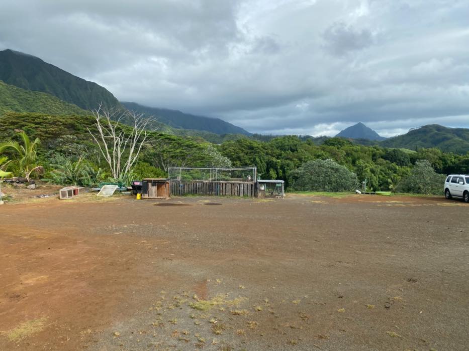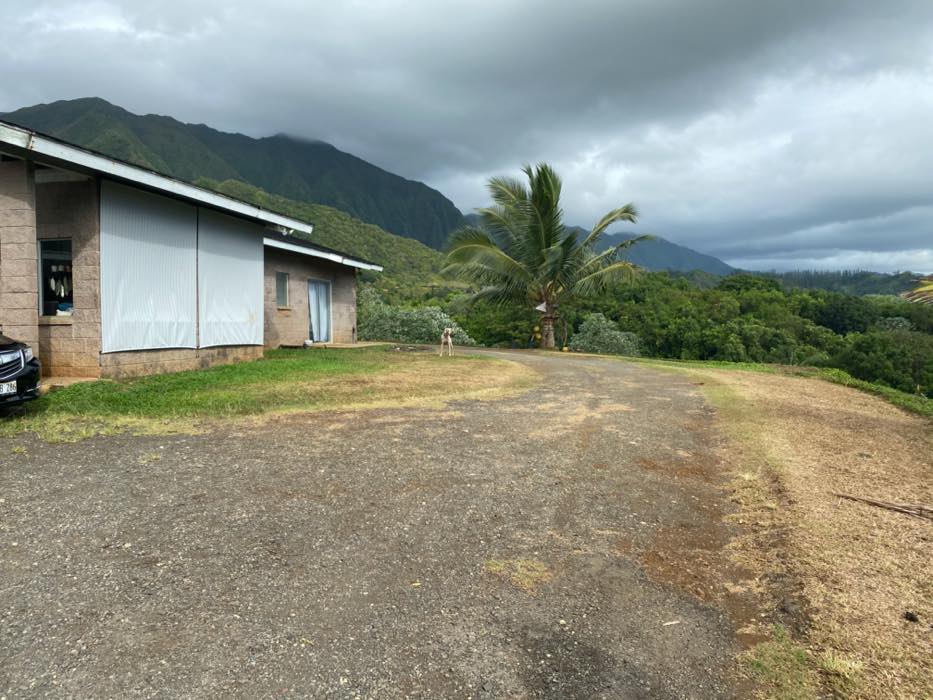 House is at the top of a hill and the access is stakebed only and steep dirt driveway. LOTS OF CHICKEN NOISE FROM FARM NEXT DOOR~ Lots of chickens nearby and lots of dogs and animals in the back yard of this place. Great views of the property below and the Koʻolau mountains in the back.