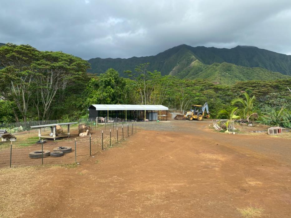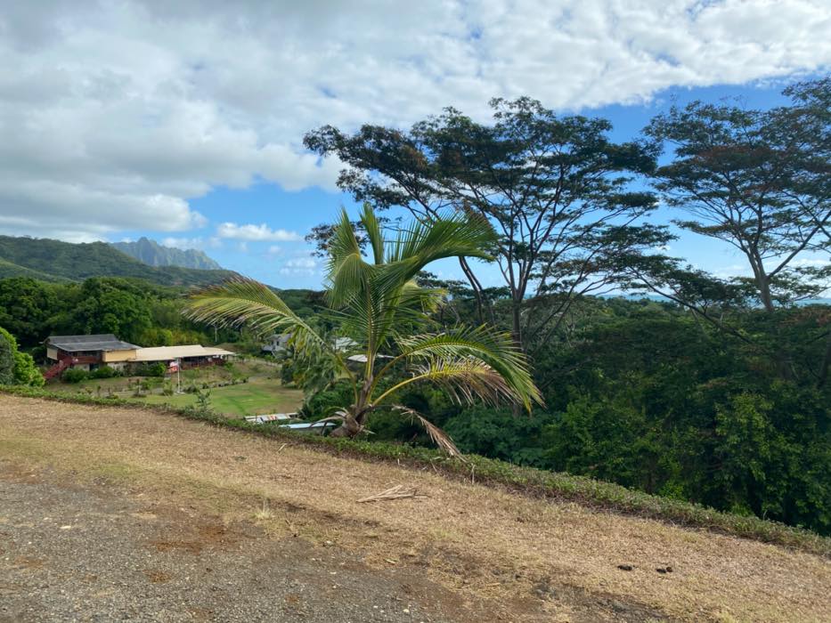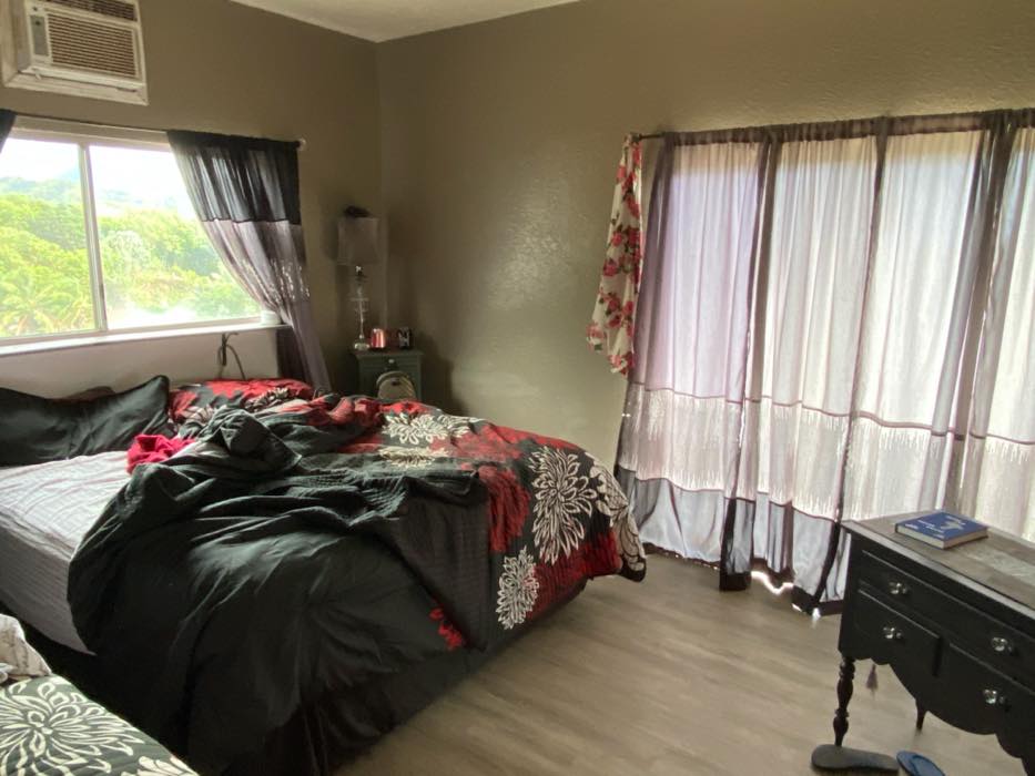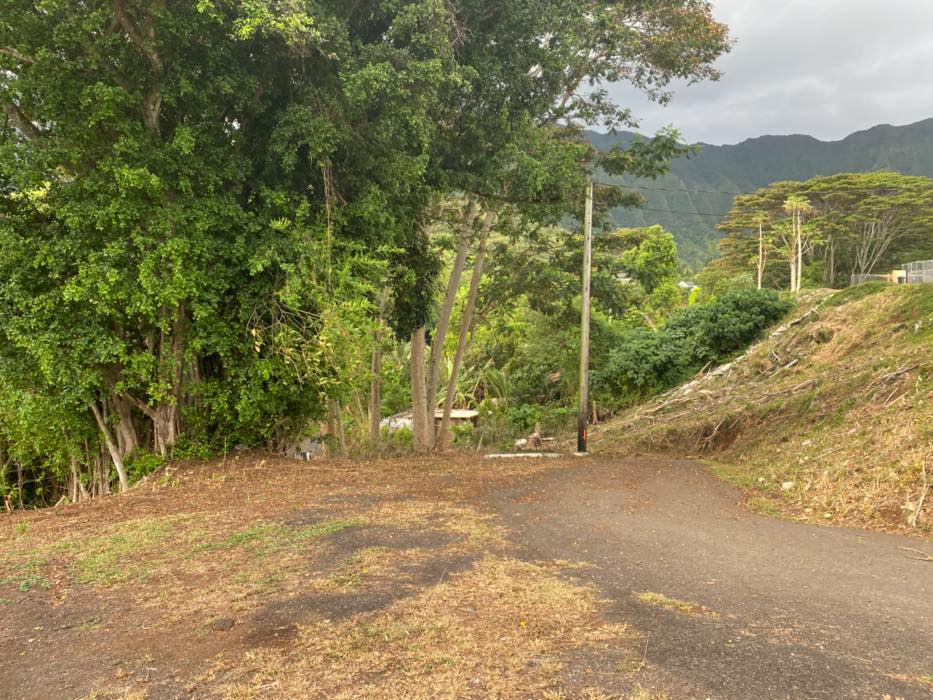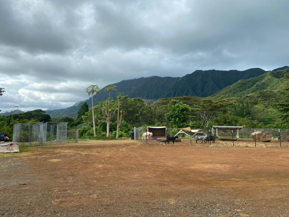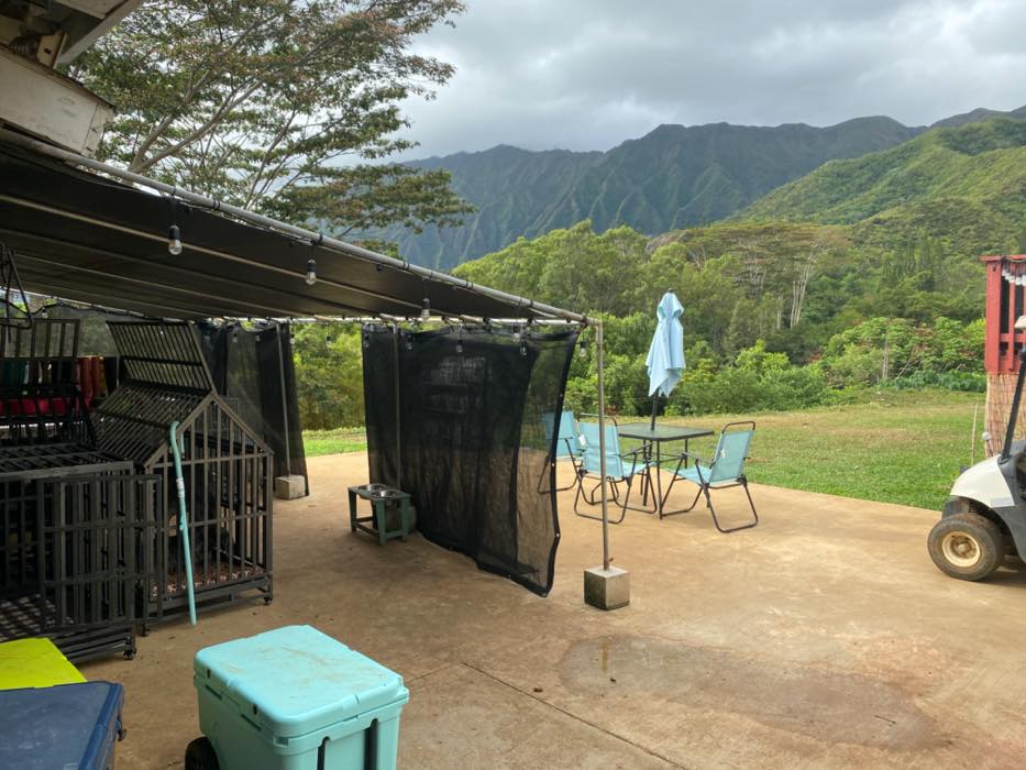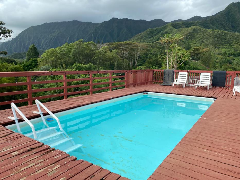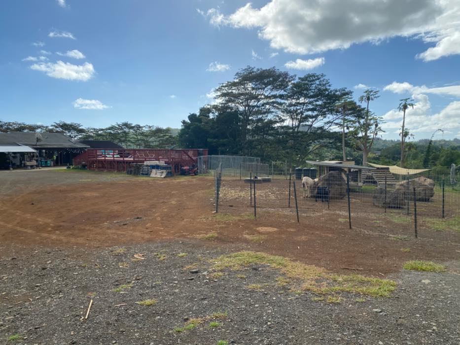 House is at the top of a hill and the access is stakebed only and steep dirt driveway. LOTS OF CHICKEN NOISE FROM FARM NEXT DOOR~ Lots of chickens nearby and lots of dogs and animals in the back yard of this place. Great views of the property below and the Koʻolau mountains in the back.