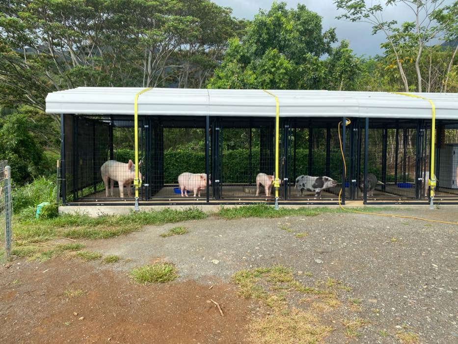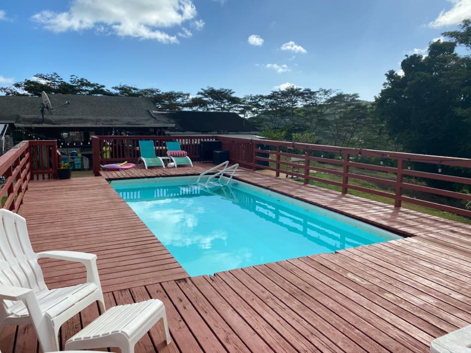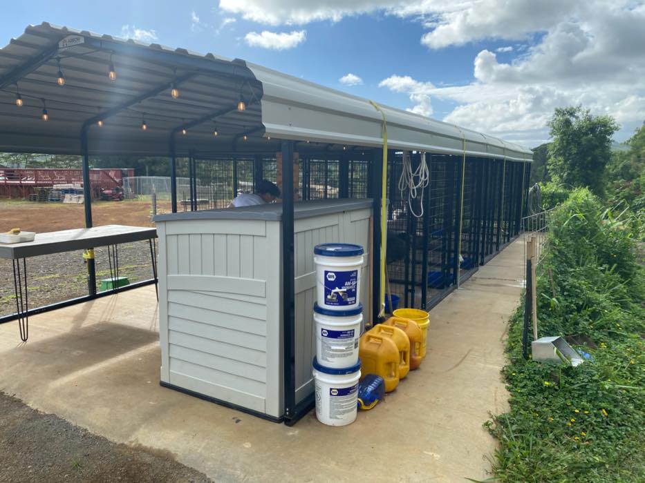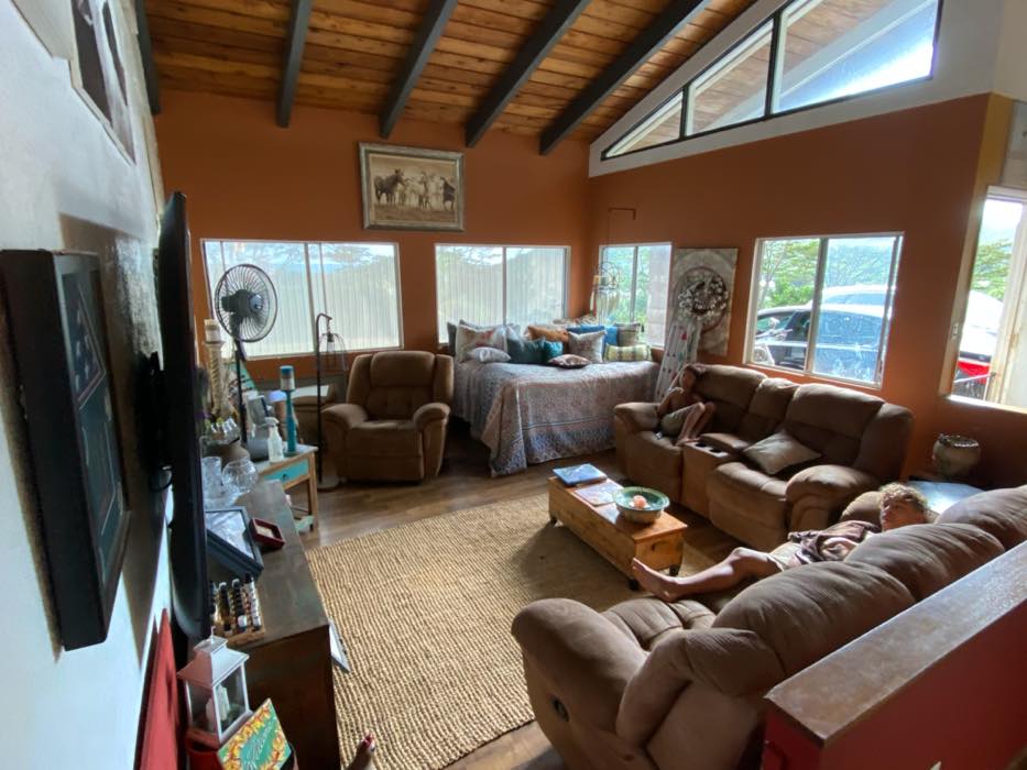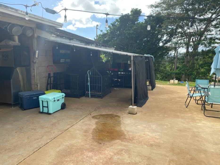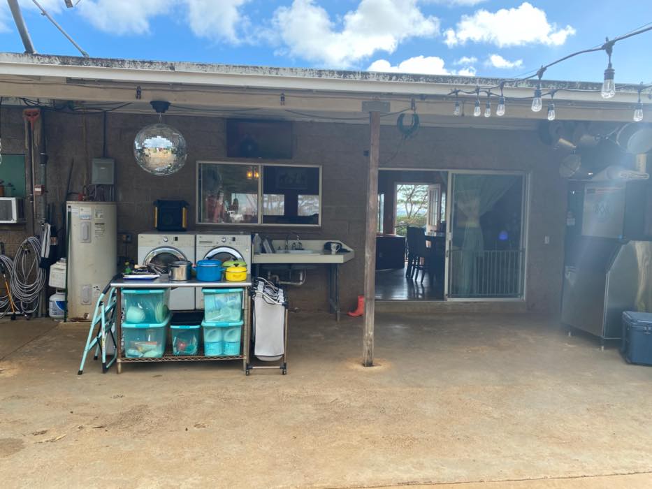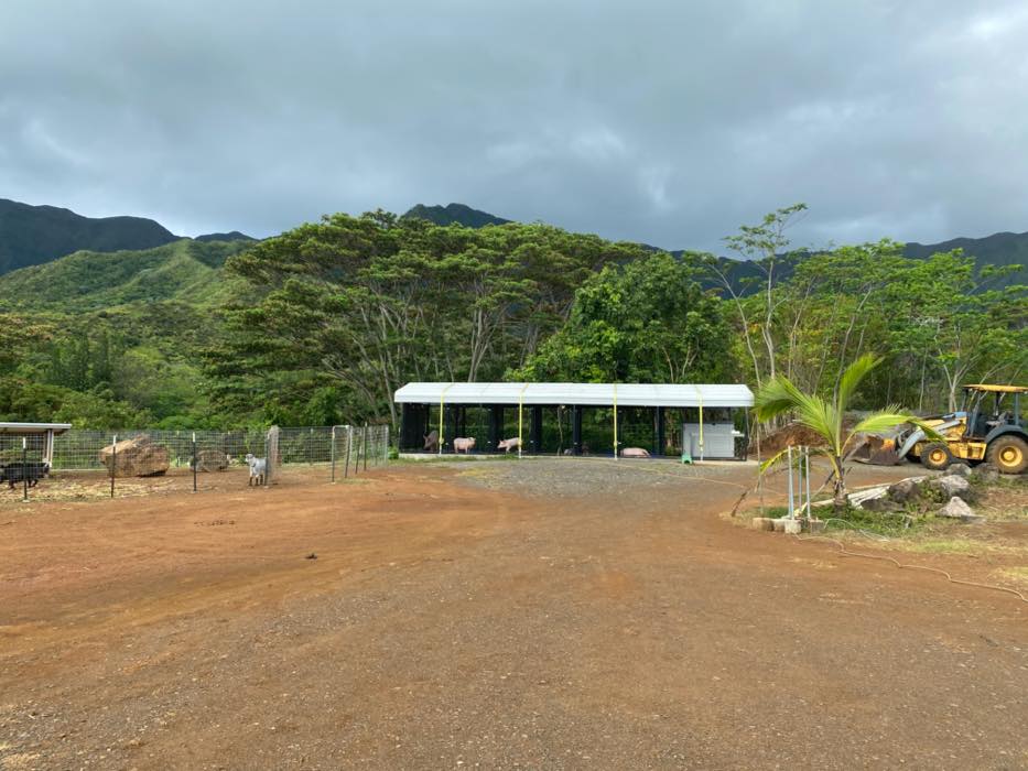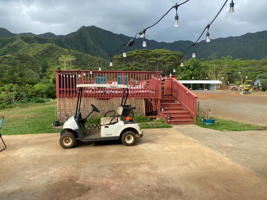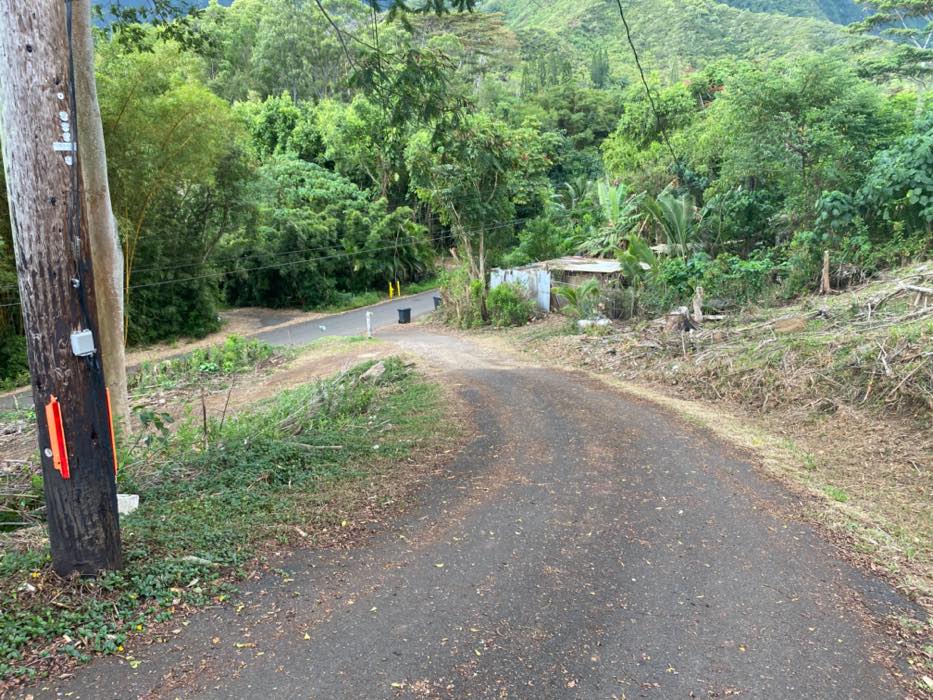 House is at the top of a hill and the access is stakebed only and steep dirt driveway. LOTS OF CHICKEN NOISE FROM FARM NEXT DOOR~ Lots of chickens nearby and lots of dogs and animals in the back yard of this place. Great views of the property below and the Koʻolau mountains in the back.