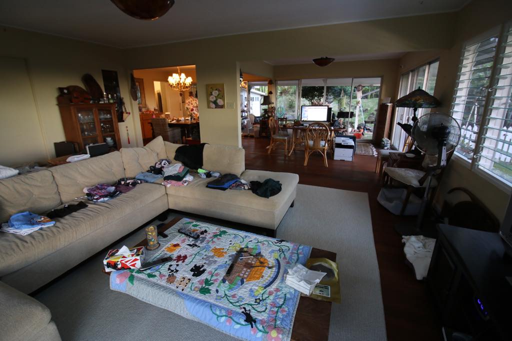 Scouted to match Konoʻs INT (kitchen & living room) - not really a match. Alani Drive is really narrow and no work truck parking and the driveway is really long and steep.