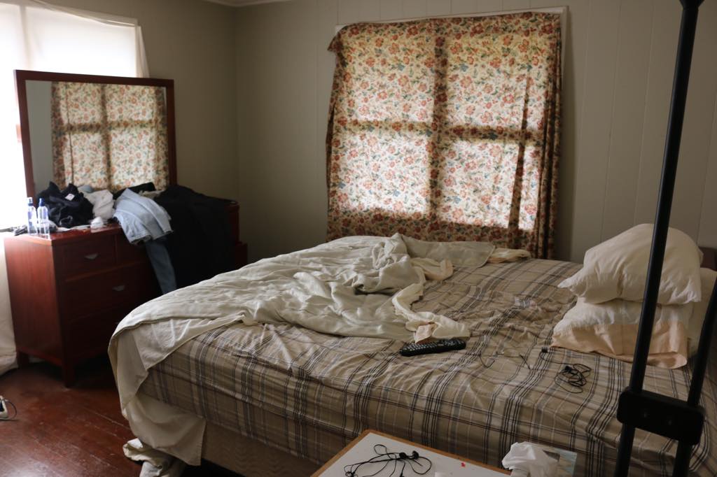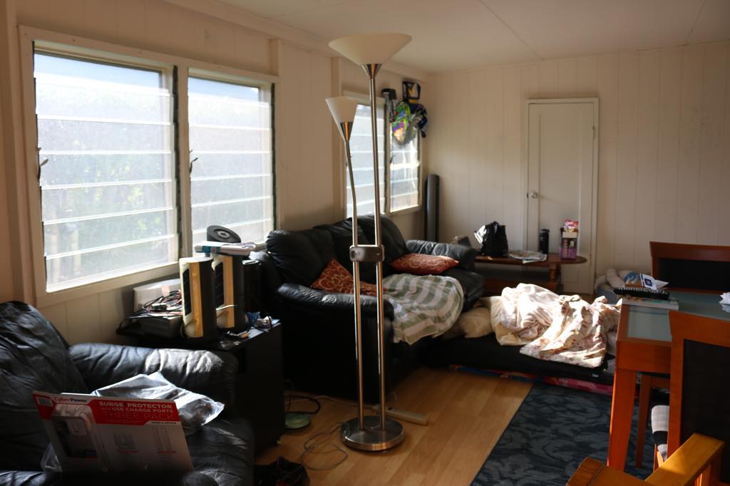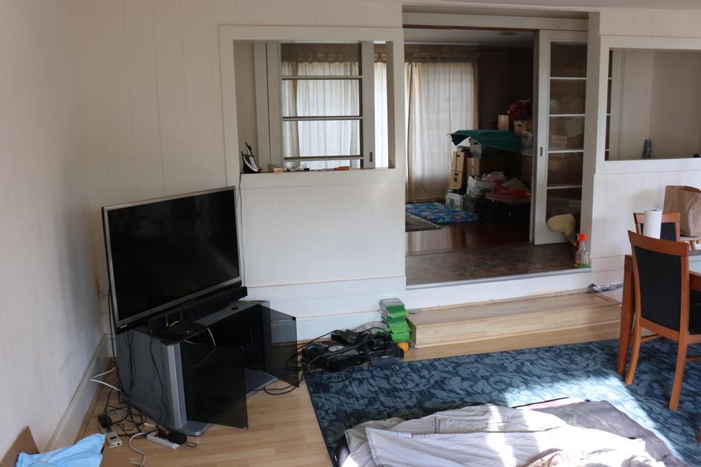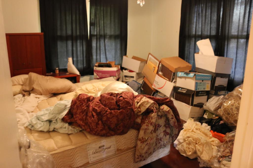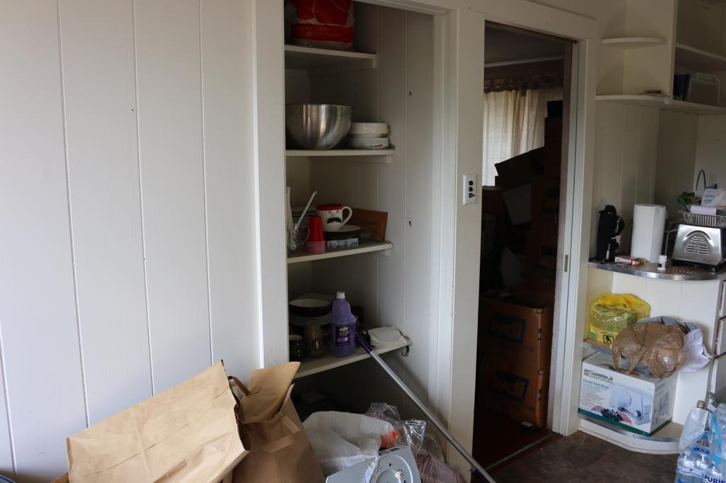 Scottʻs pics: 2018 - House is messy, back door does not work and the floor in the front of the house is lopsided.