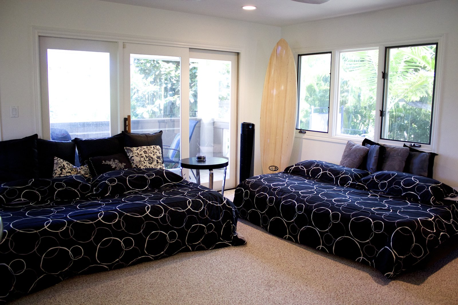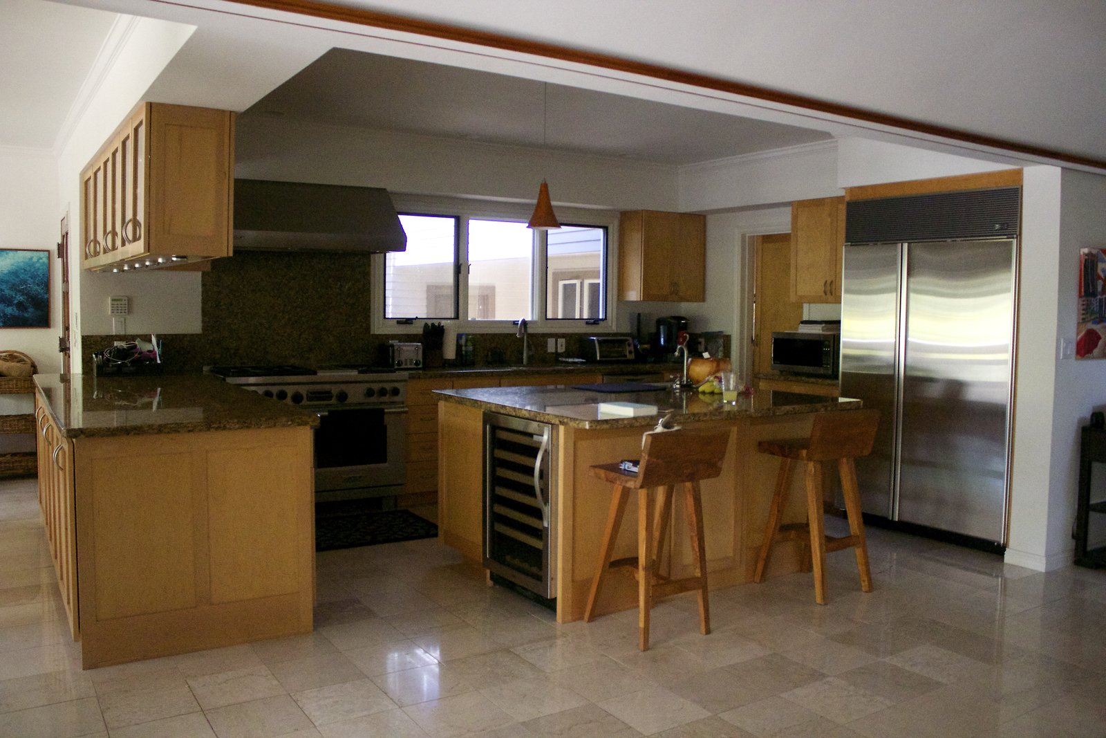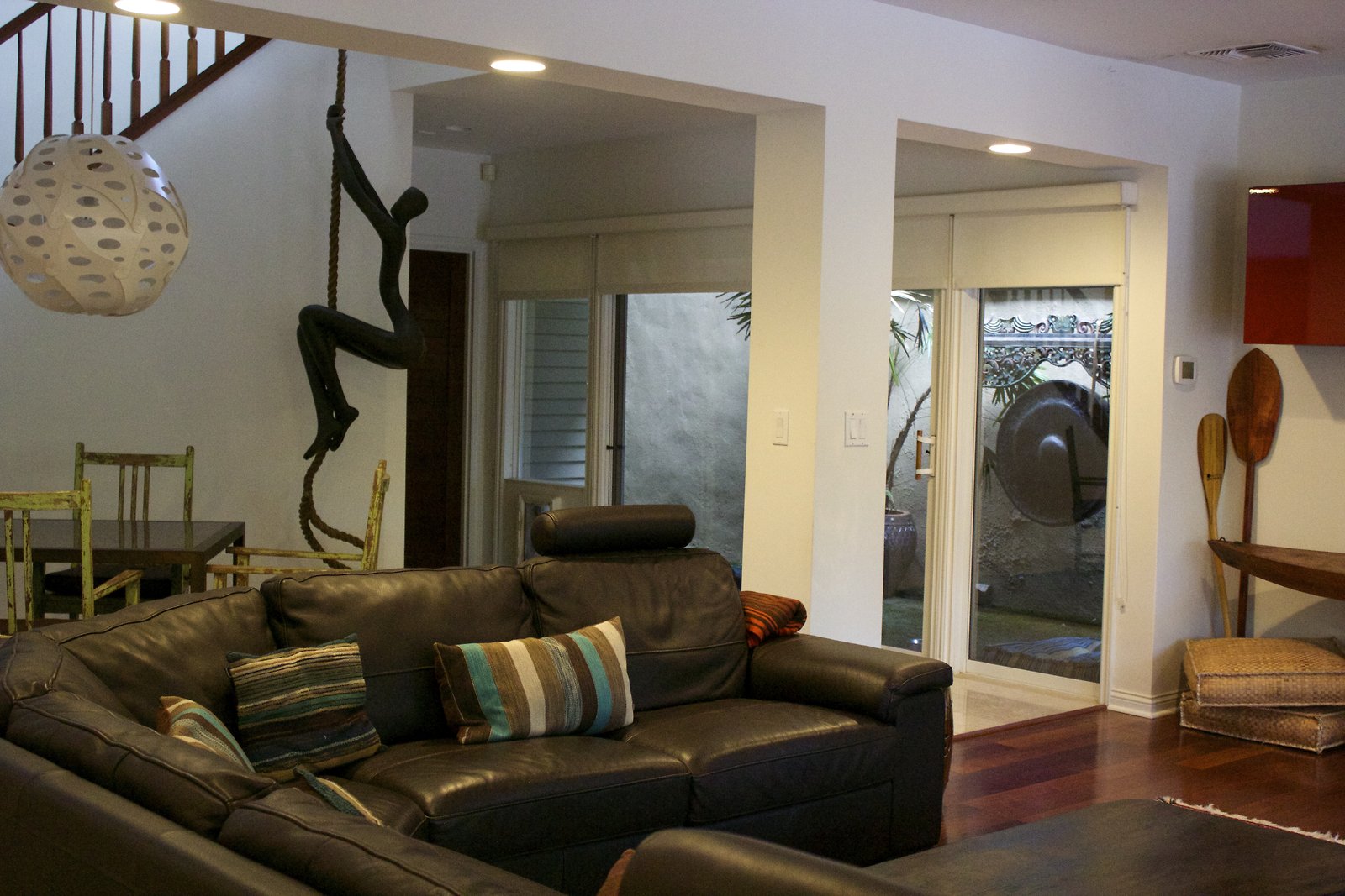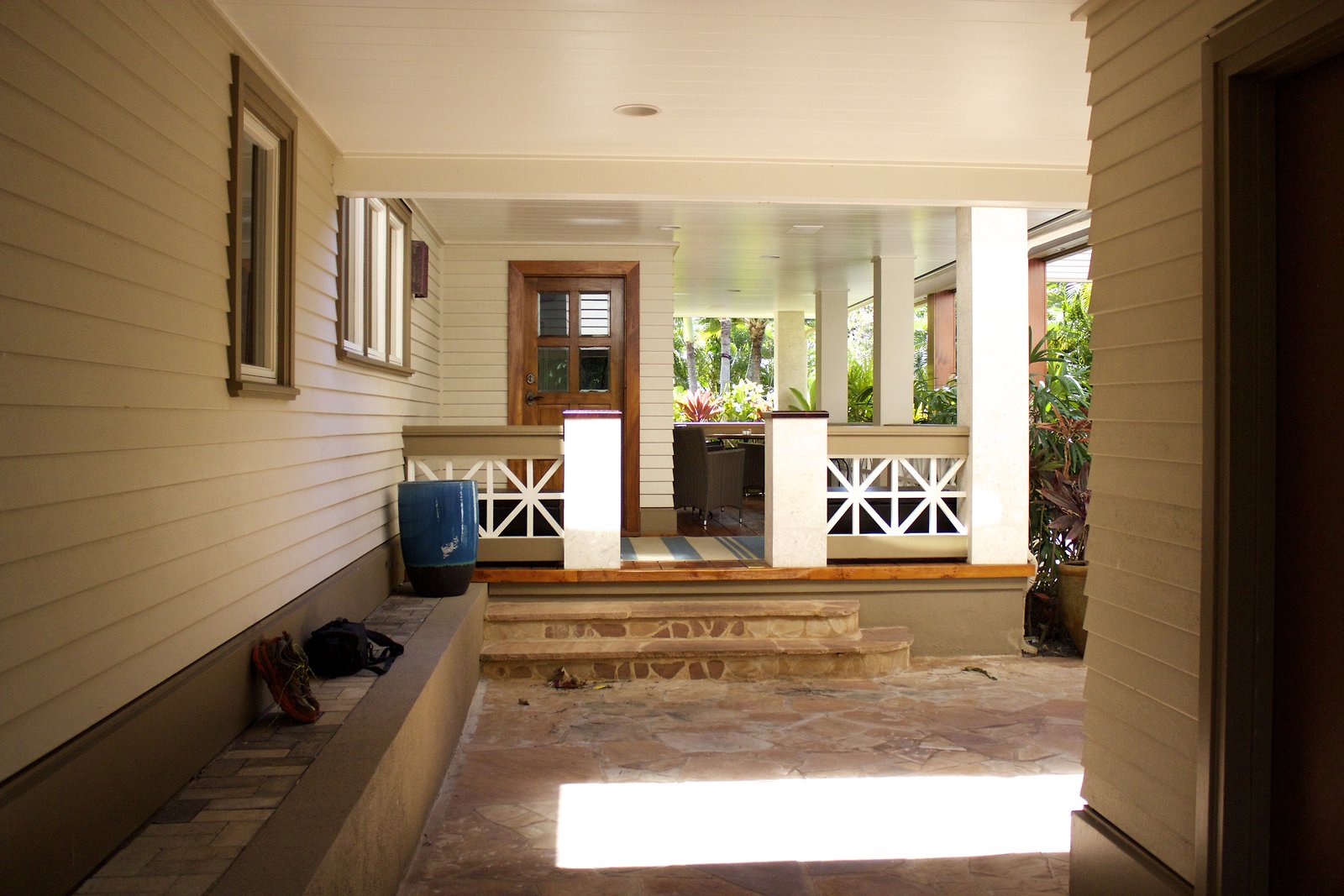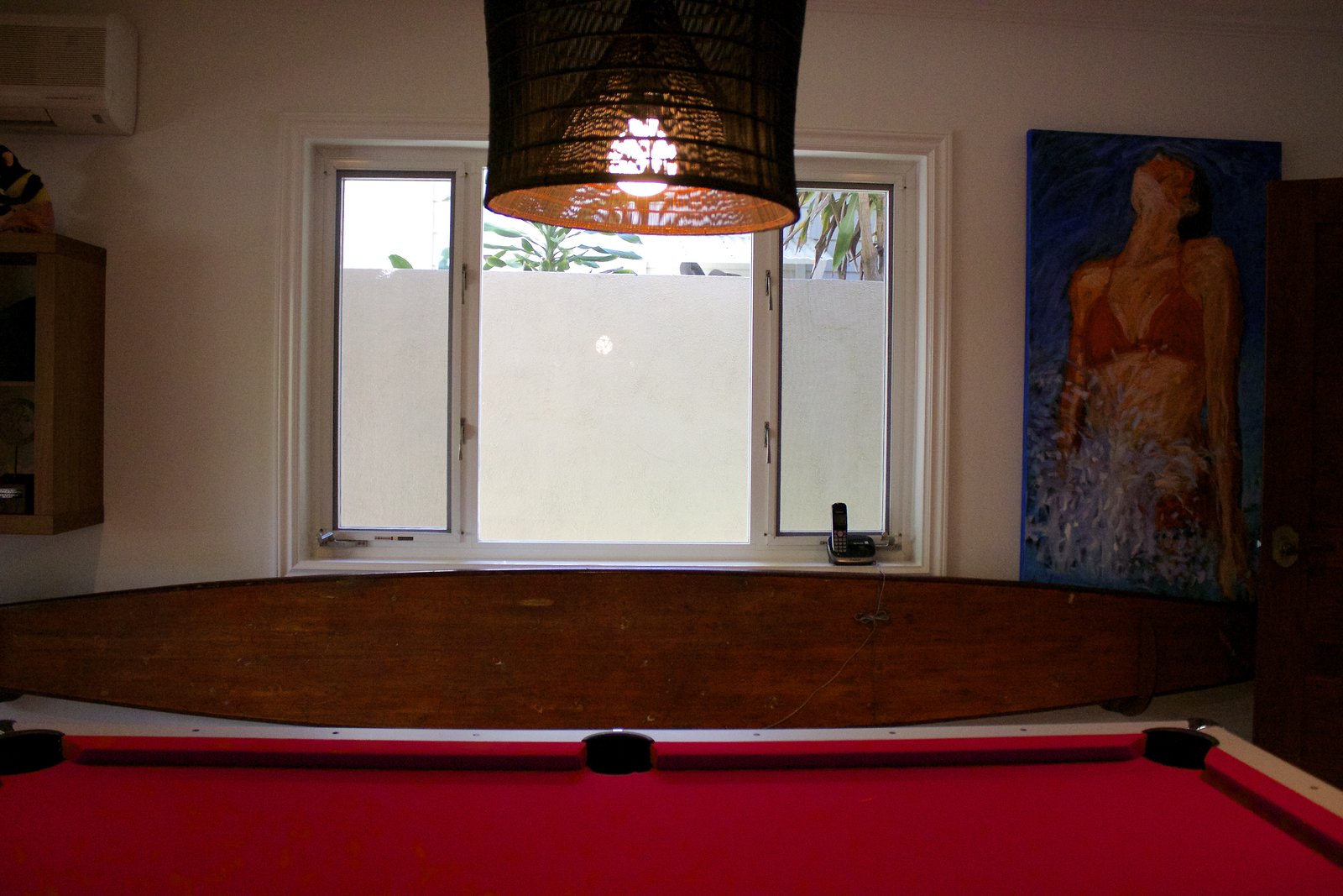 a large home in Kahala with entrances on both Kahala Ave. and Royal Place. Lots of artwork by the husband, and vintage paddleboards and surfboards in all areas of the house. Pool near the Royal Place entrance.
