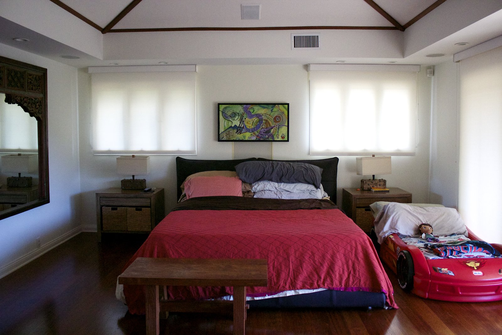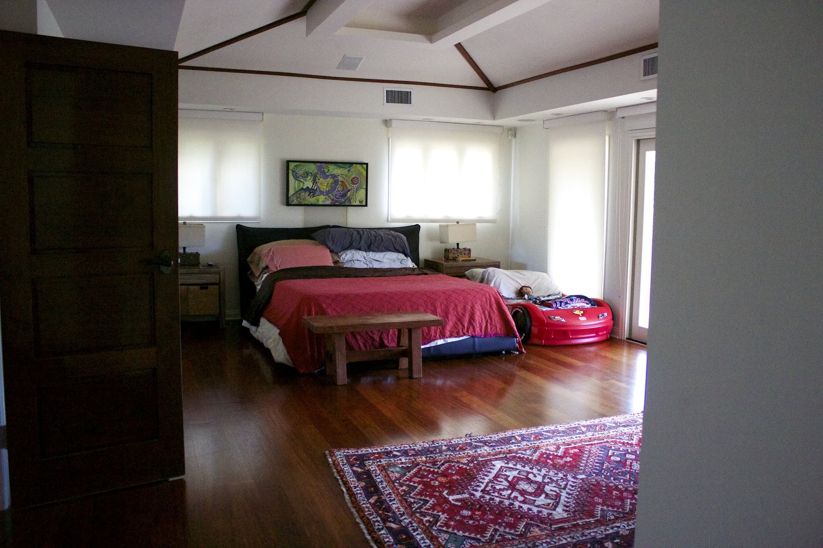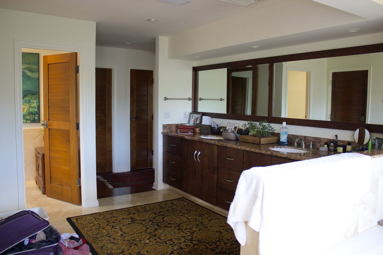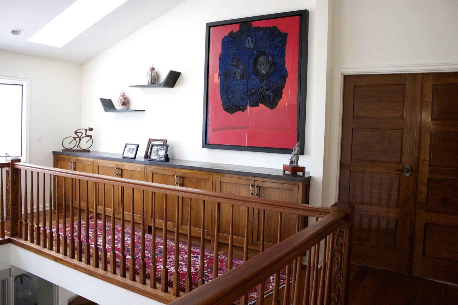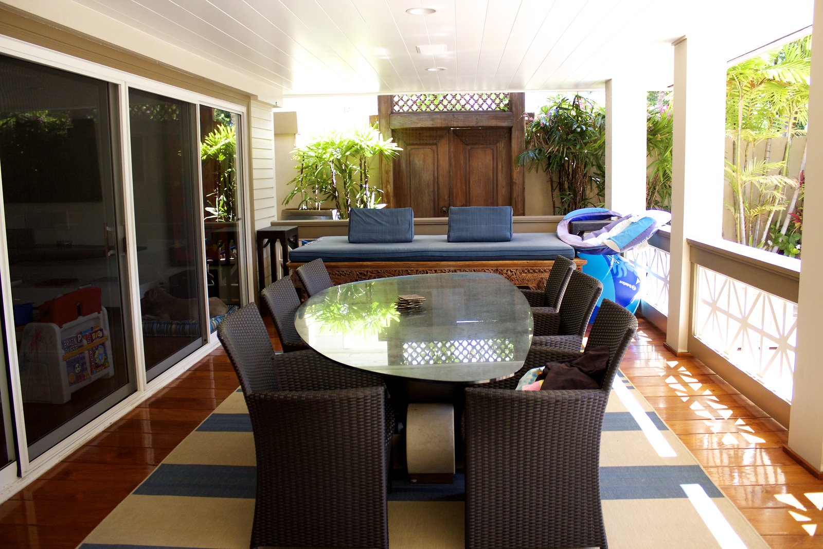 a large home in Kahala with entrances on both Kahala Ave. and Royal Place. Lots of artwork by the husband, and vintage paddleboards and surfboards in all areas of the house. Pool near the Royal Place entrance.