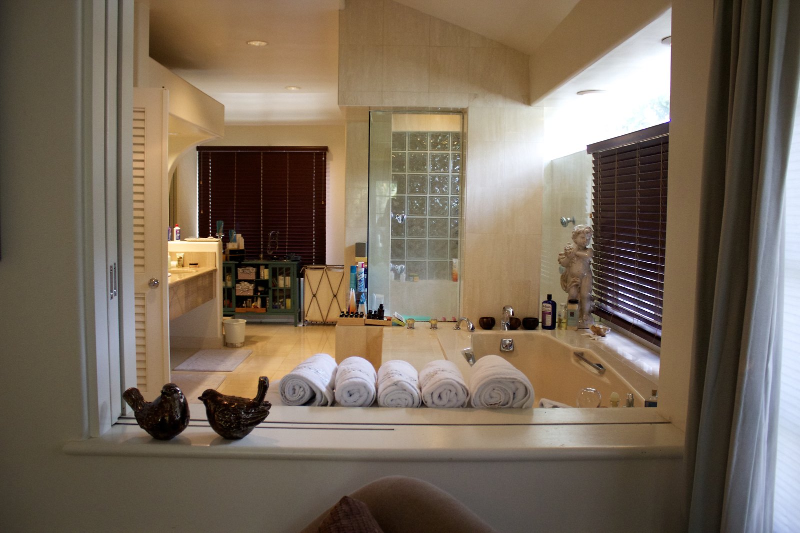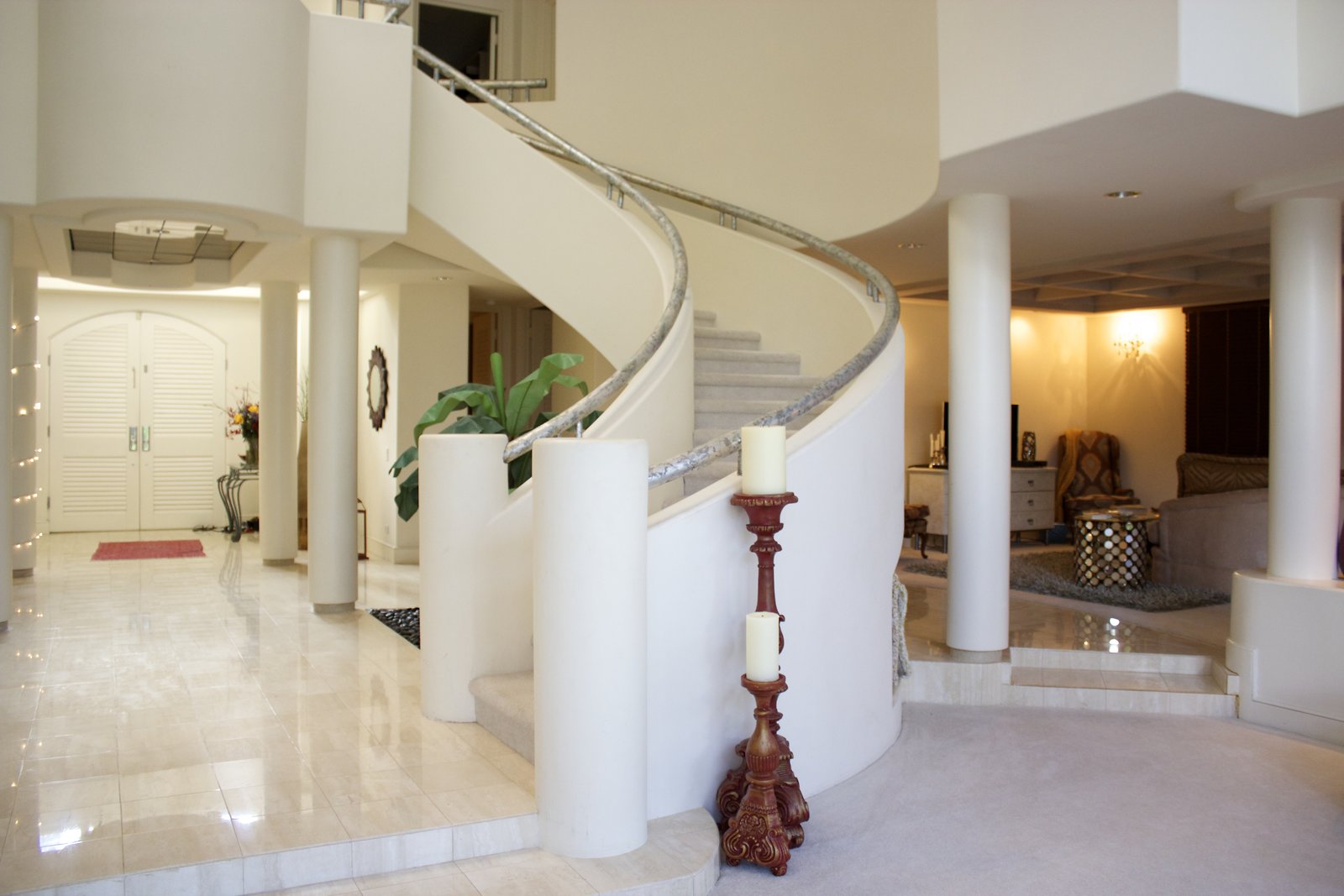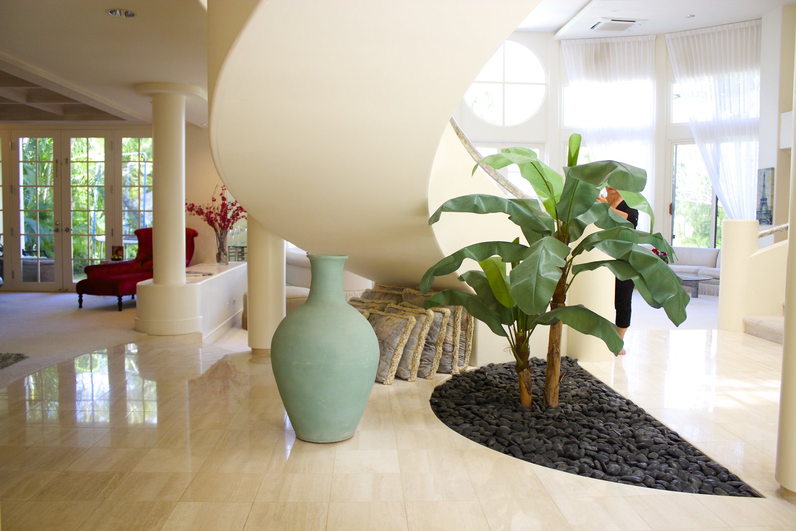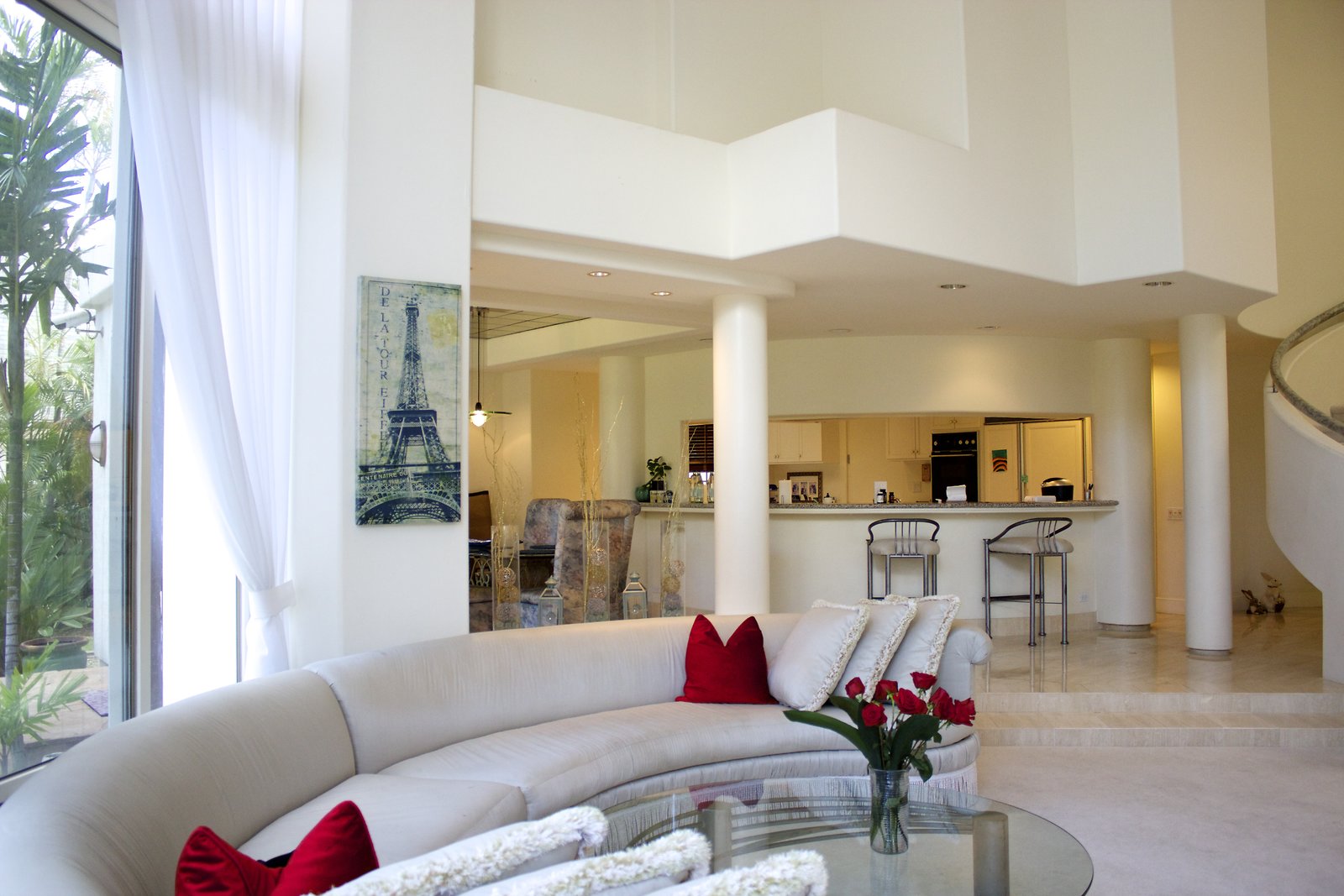 a Hollywood-type home with a more modest exterior, high ceilings, and lots of light