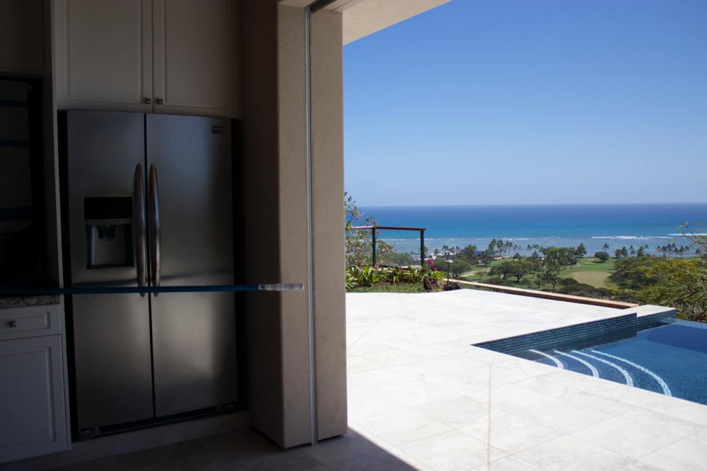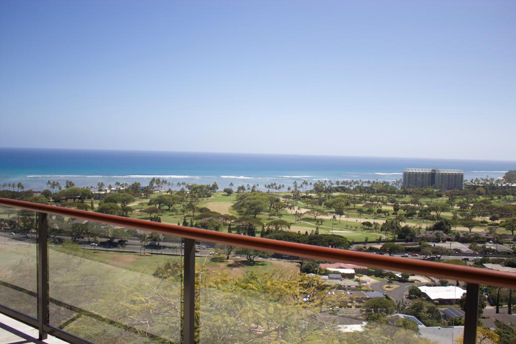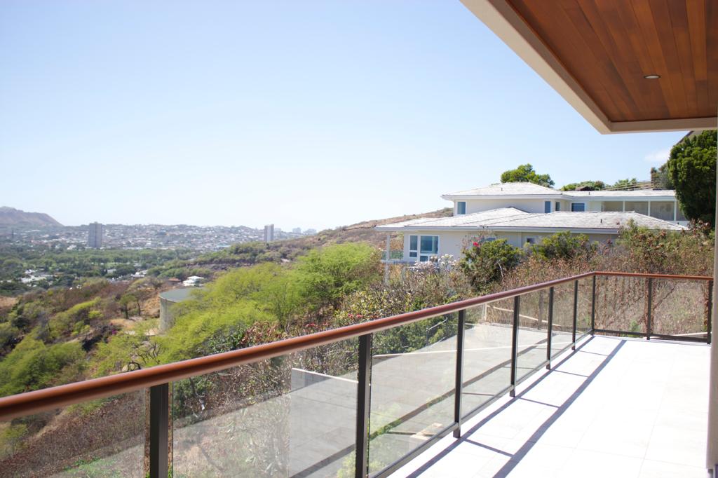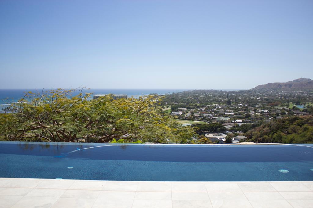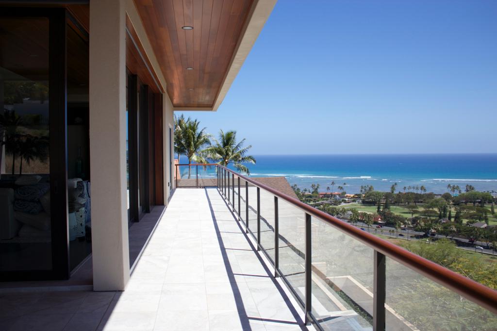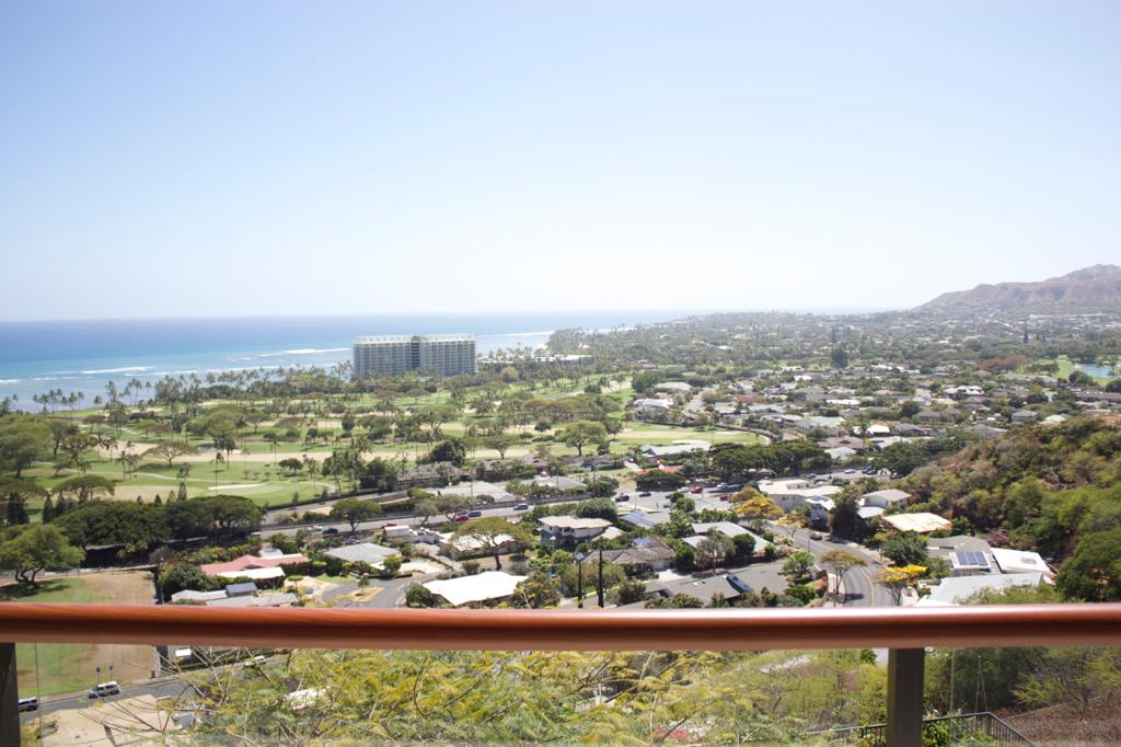 A house in Waialae Iki that overlooks the ocean, the golf course, and has a view of Diamond Head as well.
