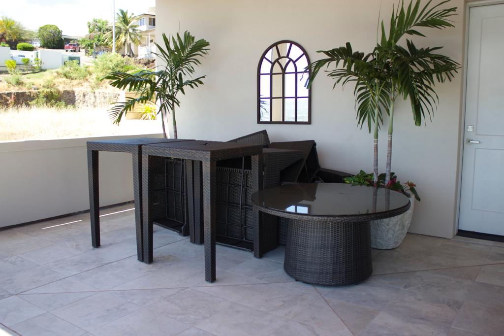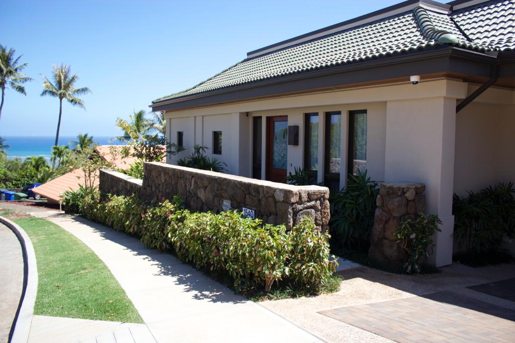The house is located on a slant which may affect work truck parking, etc. First floor is easily accessible through the front door and there is a short flight of stairs on the Hawaii Kai side of the house, which leads to the grassy lawn area.
