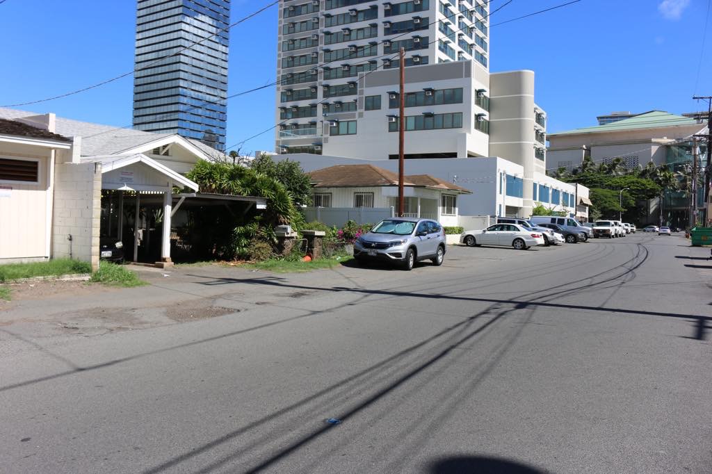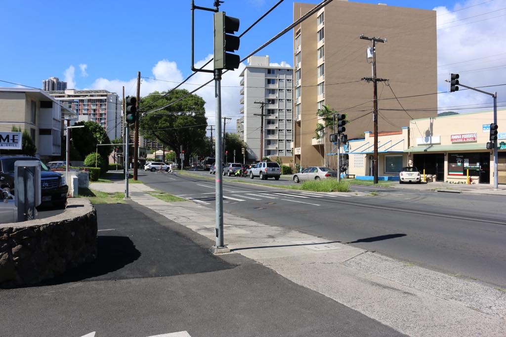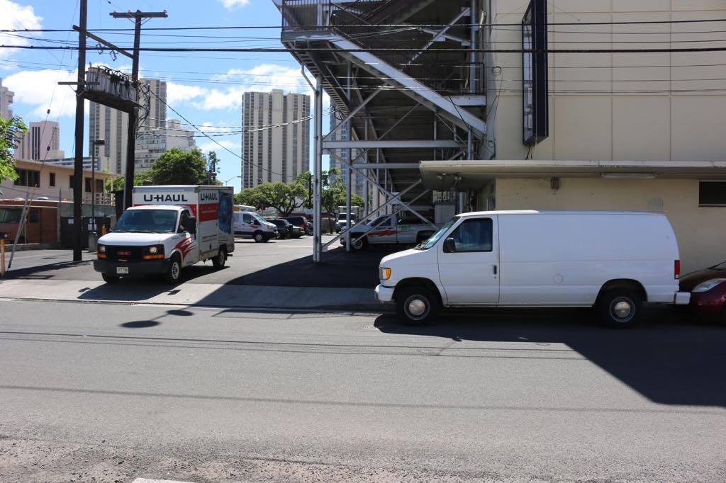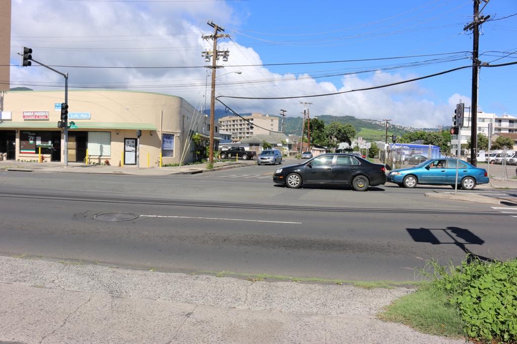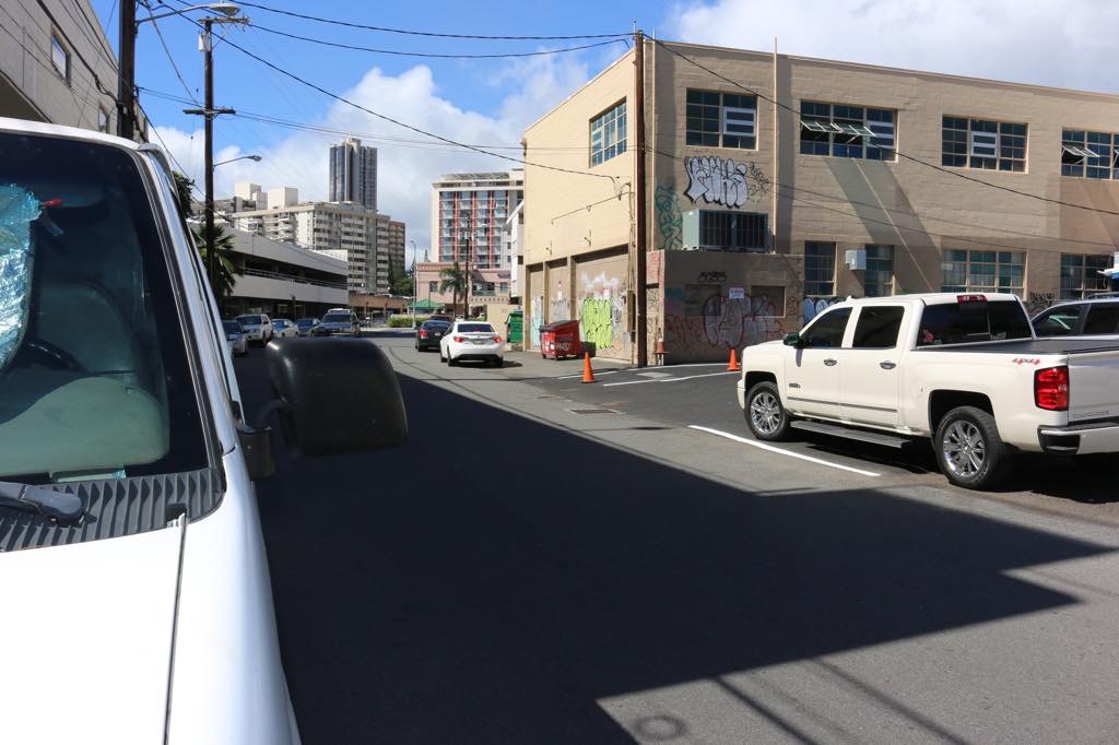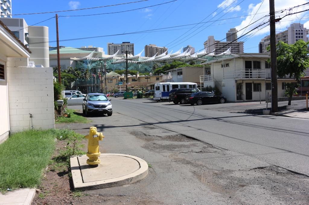 Kalauokalani Way entrance (where the grey pick-up truck is) may be much easier to control traffic.