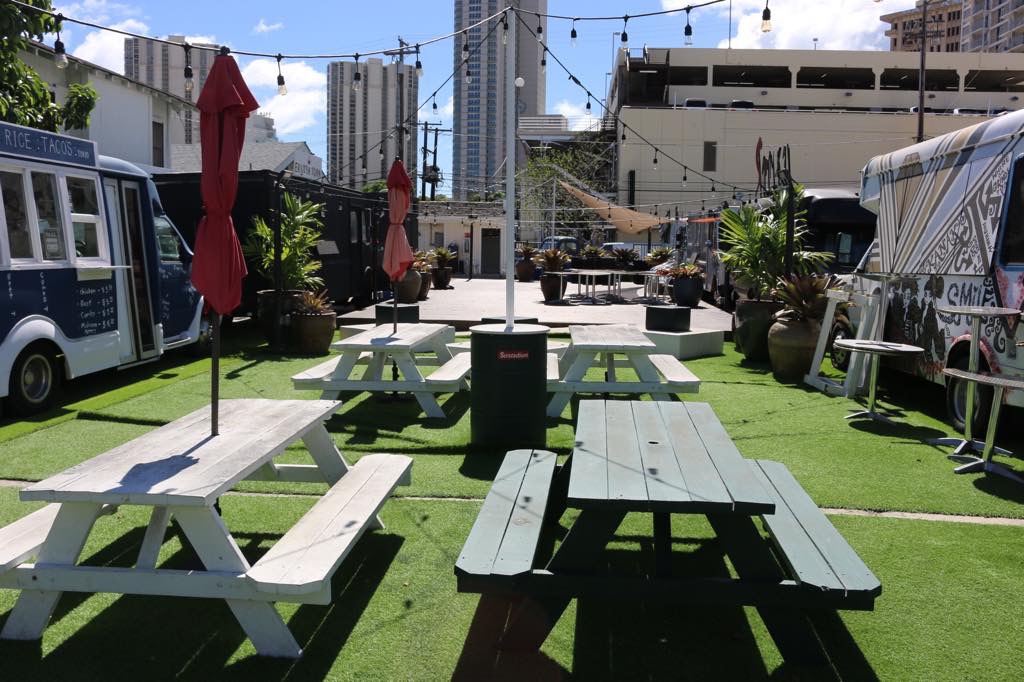 Scott's pics: 9/22/2016. Lunch truck location is closed now. All trucks are owned by management company. Samurai Grill and Rice Tacos Tokyo are business names by other companies. 5-0 can redesign the trucks if we want to, so long as we put it back how it was when we are done.
