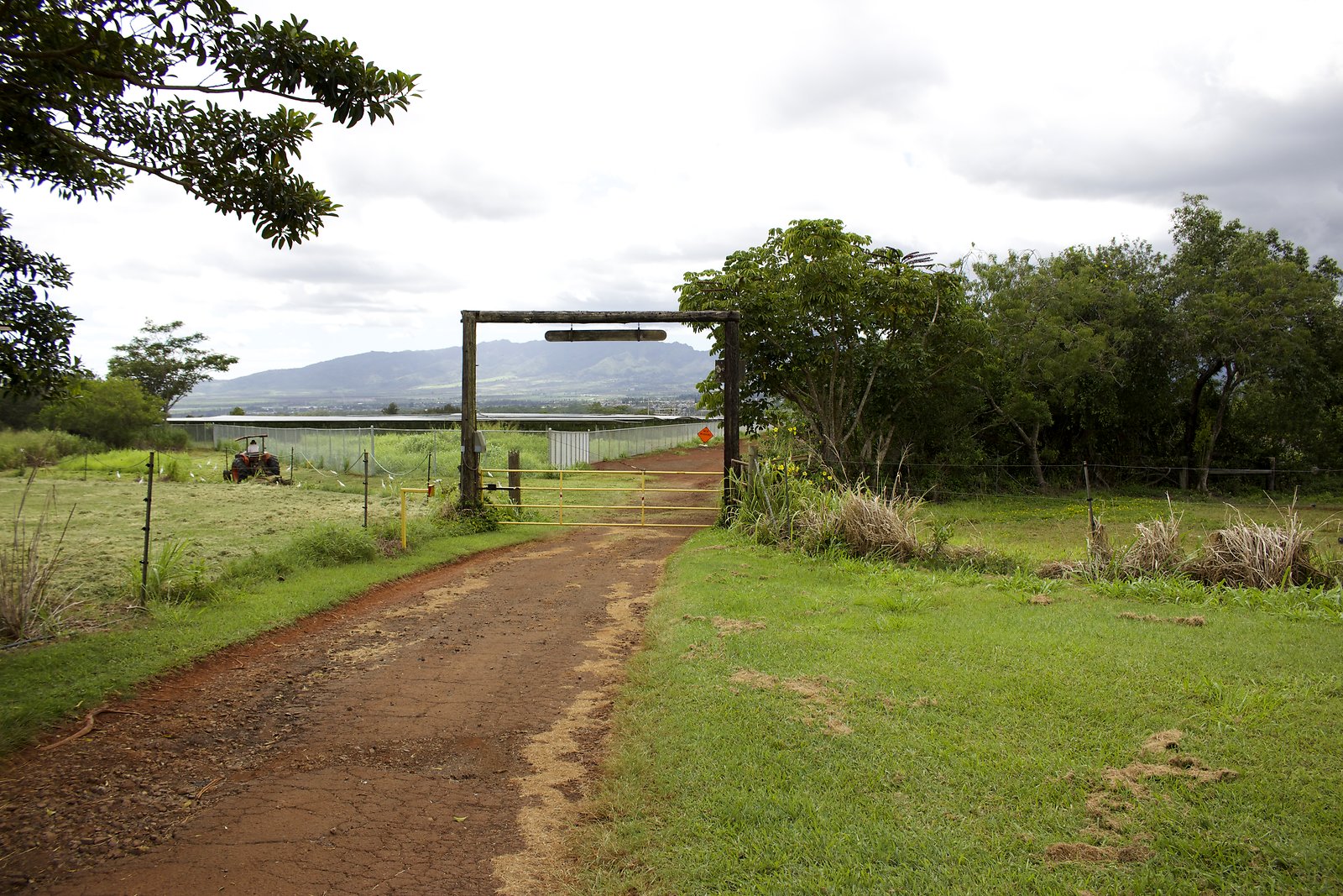 Farm entrance is 3 miles down a dirt road through tall grass, trees and eventually feilds of solar panels.