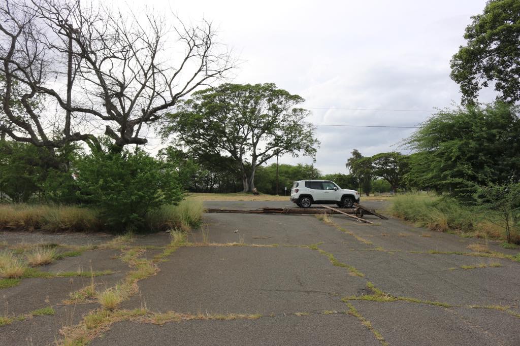 Scott's pics: 10/4/2016. Crossroad is next to Barber's Point Elementary School. Sign says private property and Forrestal Road is blocked with old telephone pole on both ends.
